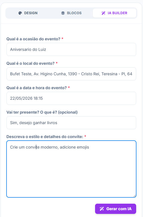 🤖 Opção 2: Criar convite com IA (IA Builder)