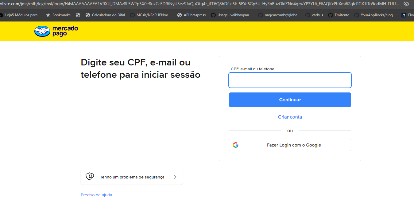 5. Faça login na sua conta Mercado Pago