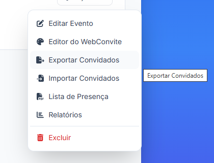 No menu exibido, selecione a opção "Exportar Convidados".